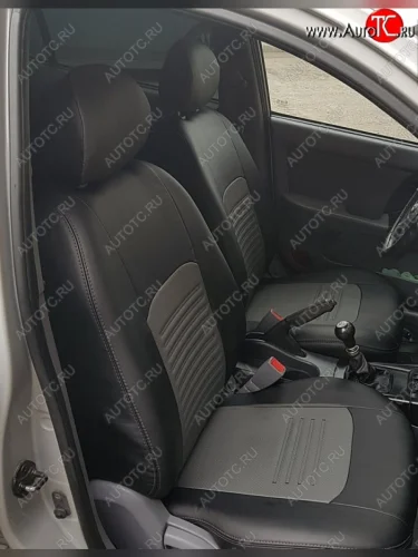 Чехлы для сидений Lord Autofashion Турин (экокожа) Toyota Avensis T250 универсал дорестайлинг (2003-2006) (Чёрный, вставка серая) в Майкопе республика Адыгея