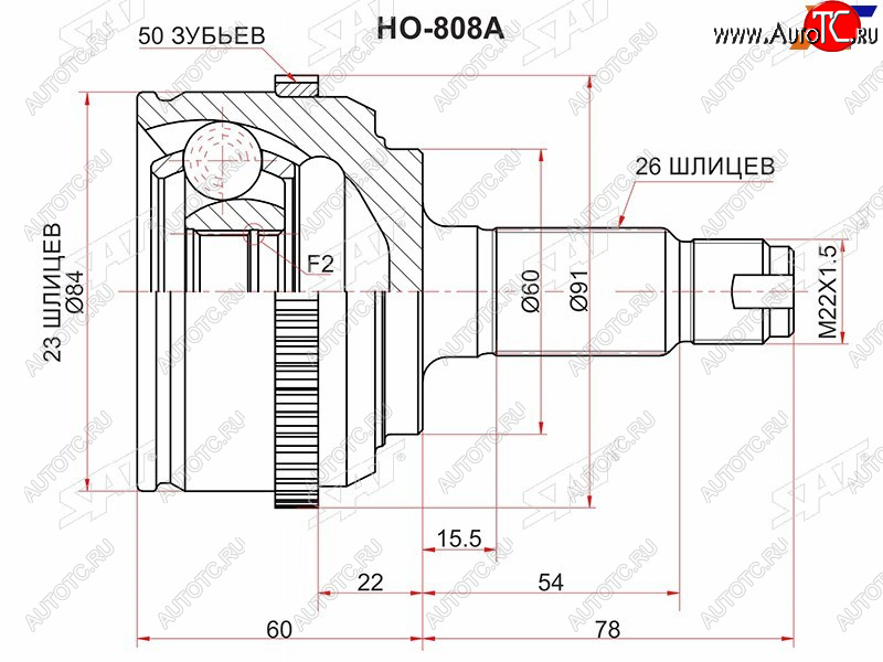 | Наименование | Шрус наружный HONDA CIVIC EUEPES 01-06 SAT HO-808A в Майкопе республика Адыгея |